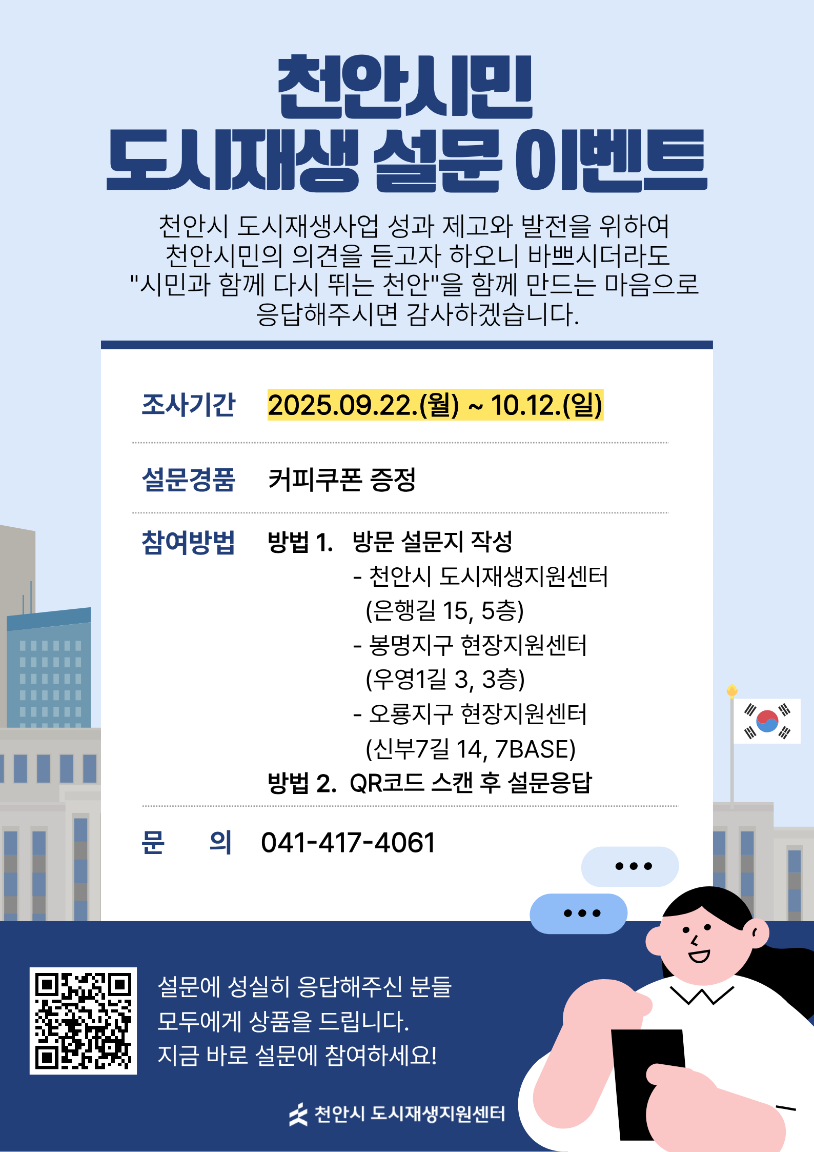 5. 조사기관: 천안시 도시재생지원센터(041-417-4061)